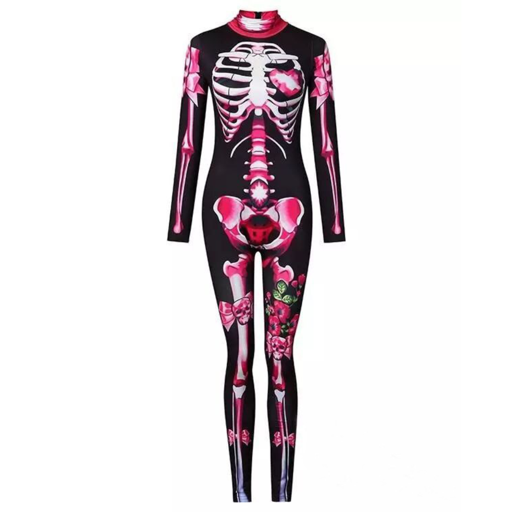 Kids Girls Skull Bones Floral Printed Jumpsuit Cosplay Outfits Halloween Party Suit