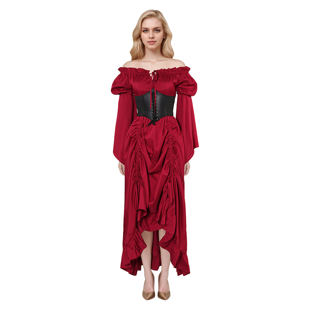 Medieval Women Red Dress 2 Piece Set Cosplay Outfits Halloween Party Suit
