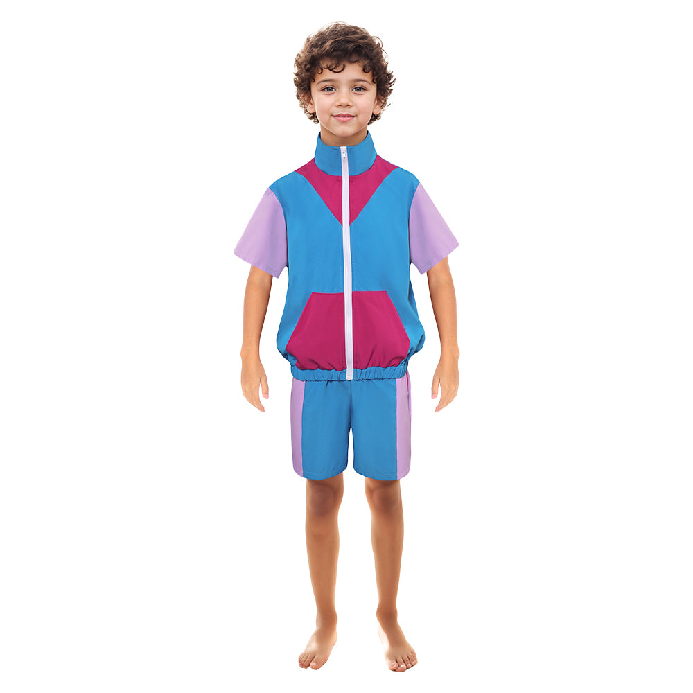 Retro 80s Kids Children Short-sleeved Blue Sportswear Cosplay Outfits Halloween Party Suit